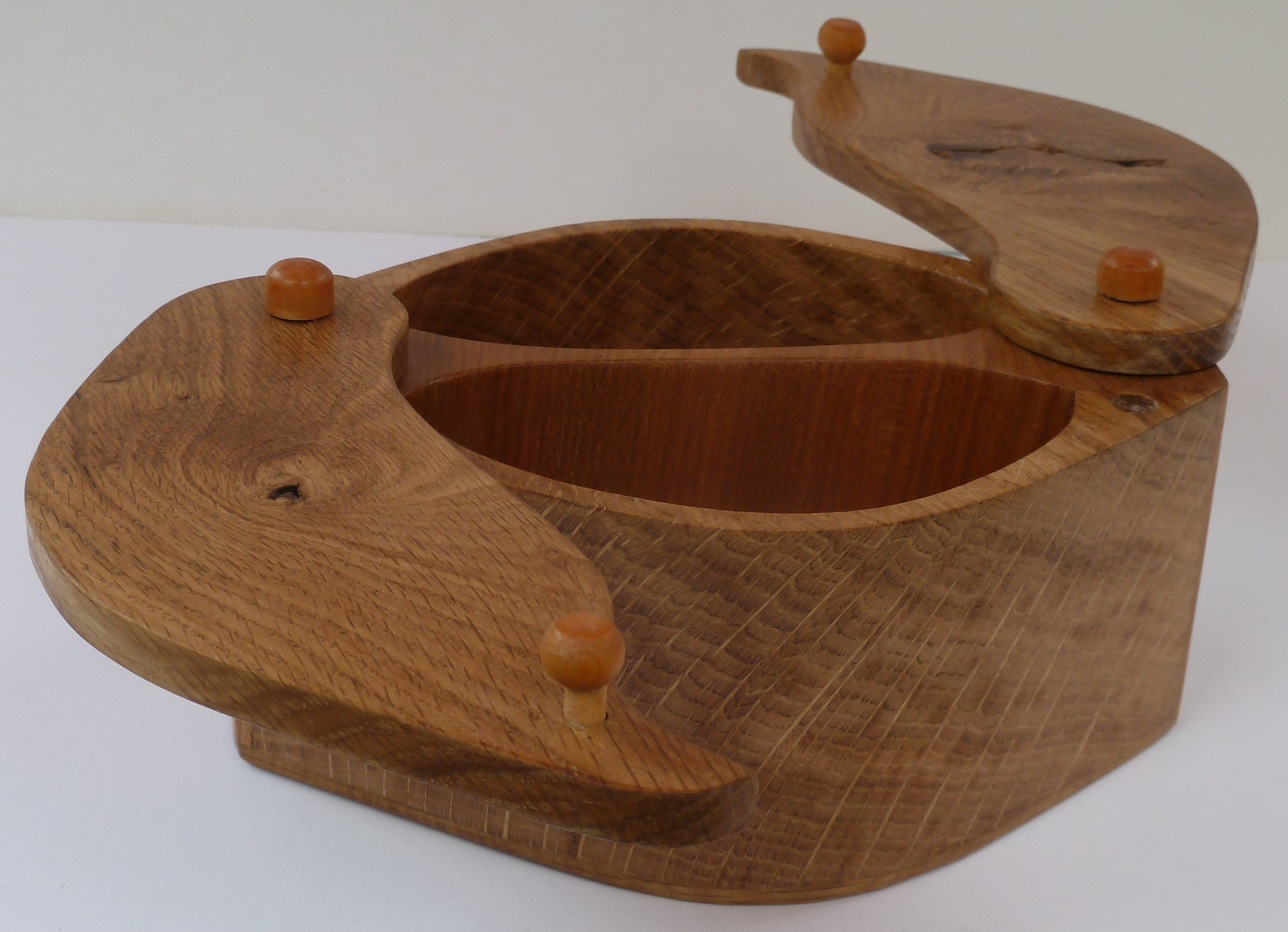oak box with leaf lids, open